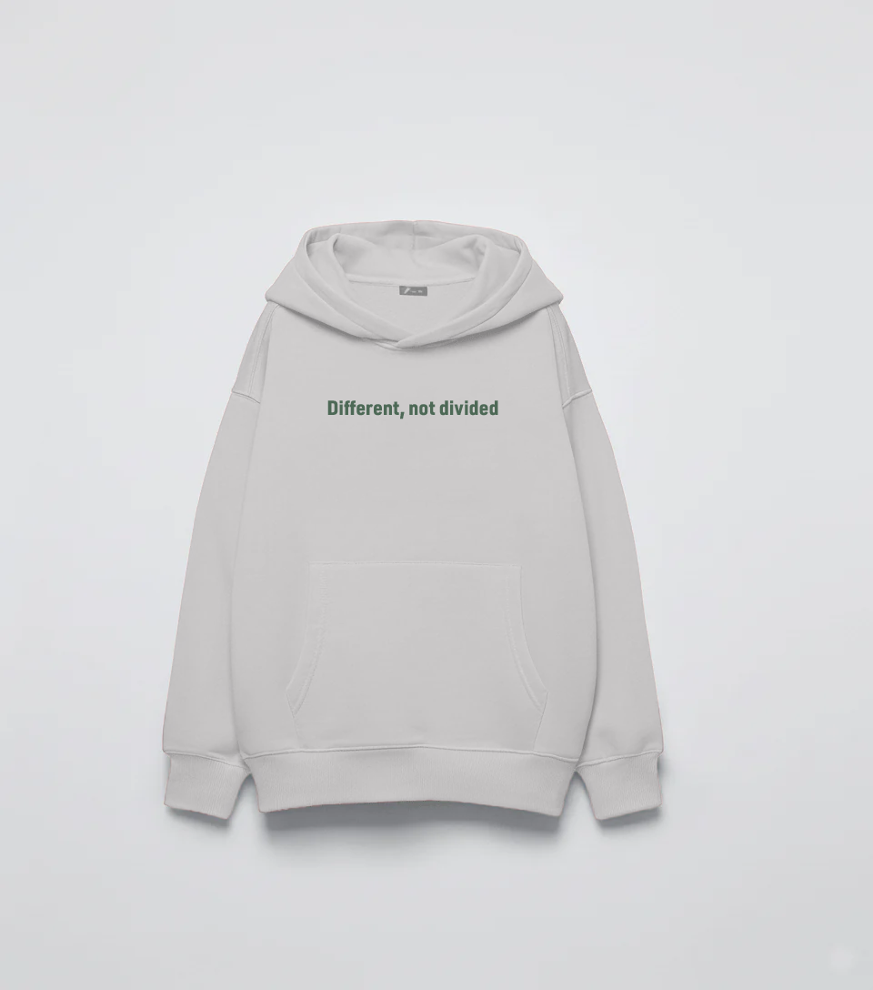 استمتعي بتصميم فريد يعكس الأناقة والدفء في وقتٍ واحد. هذا الهودي يتميز بوجهين متصلين بخط ناعم وأنيق، مما يضيف لمسة من الرقي إلى إطلالتك اليومية. العبارة المكتوبة عليه، “Different, not divided”، تجسد رسالة عن الاختلاف الذي يوحدنا، مما يجعله أكثر من مجرد قطعة أزياء – إنه بيان يعبر عن قيمك وشخصيتك.